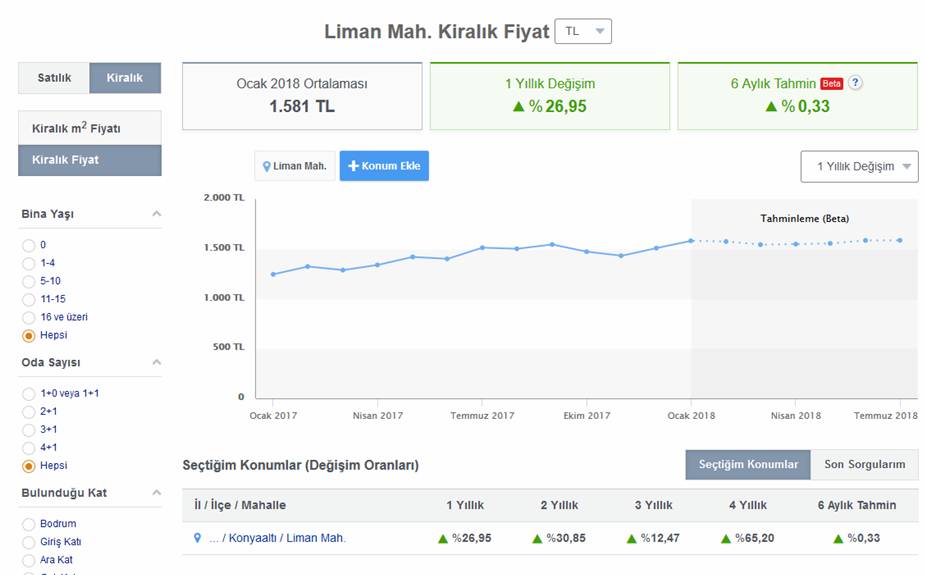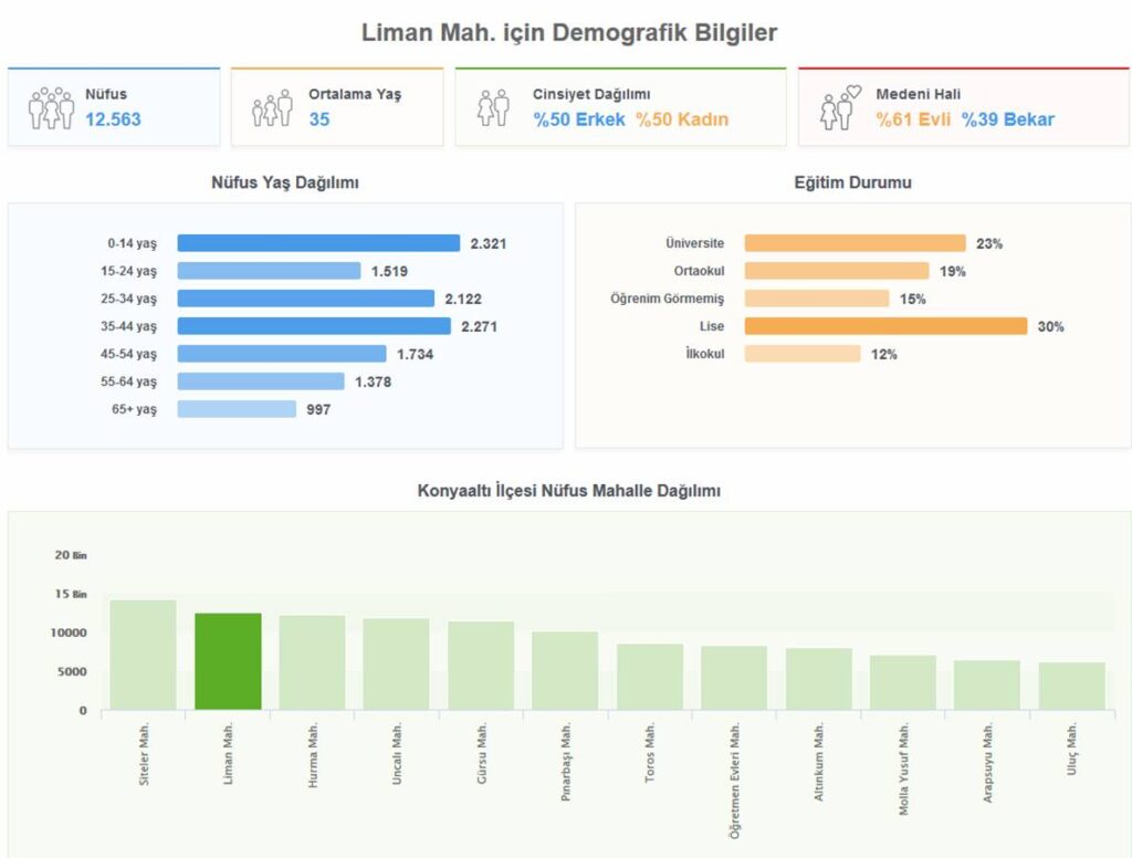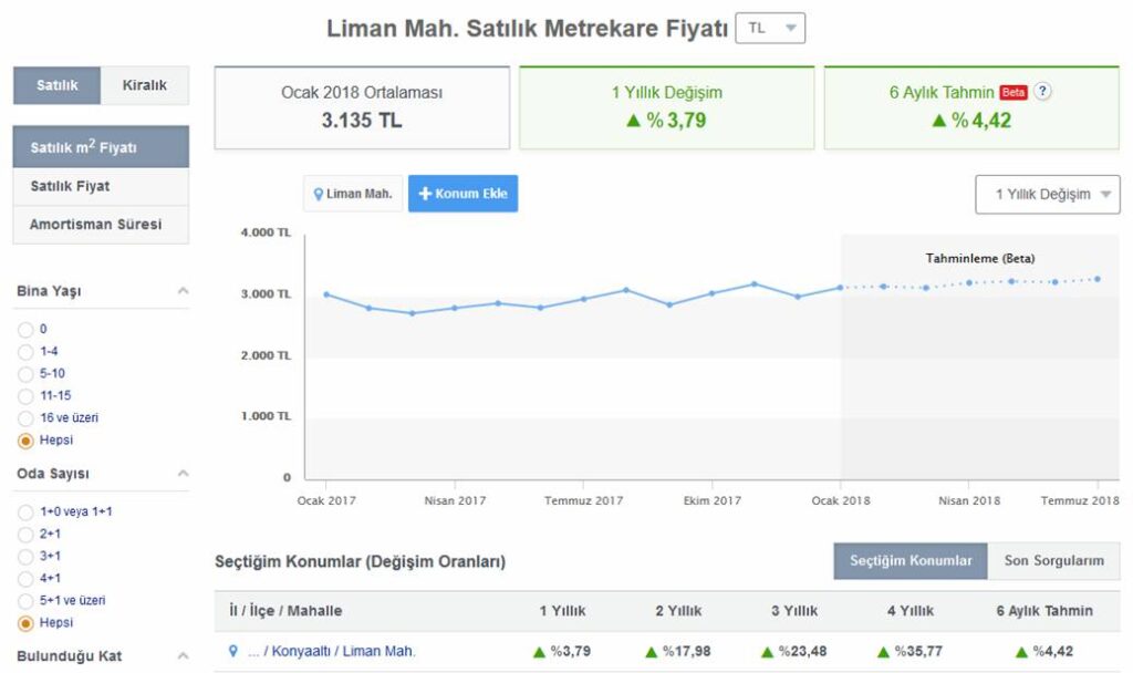 Aşağıdaki bilgilere göre, Liman Mahallesinde bulunan 100 m2 lik bir dairenin satış fiyatının 313.500 TL civarında olacağı görülmektedir. Alırken kazanmak için, bu fiyatın altında, doğru fiyatlara yakın makul ve mantıklı bir fiyat ile alış teklifi yapılabilir. Ayrıca, yine 100 m2 lik bir dairenin kira getirisinin, 1.400 ile 1.600 TL arasında olabileceği görülmektedir. Ancak, gerçek fiyatlara göre, kira gelirleri aylık olarak 800 TL ile 1.200 TL arasında bulunmaktadır. Son olarak bölgede yaşayan insanların demografik bilgileri de incelenebilir.